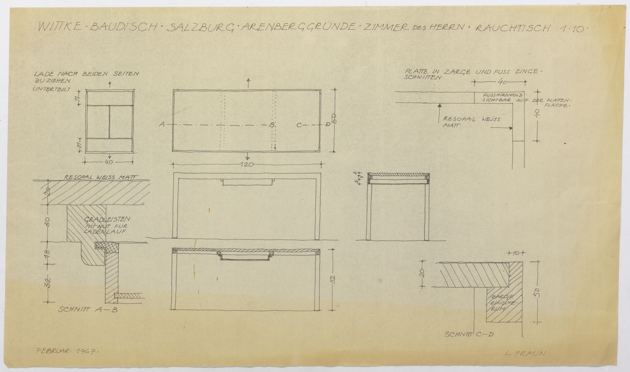 - Text am Objekt (oben) : WITTKE-BAUDISCH SALZBURG ARENBERGGRÜNDE ZIMMER DES HERRN RAUCHTISCH 1:10