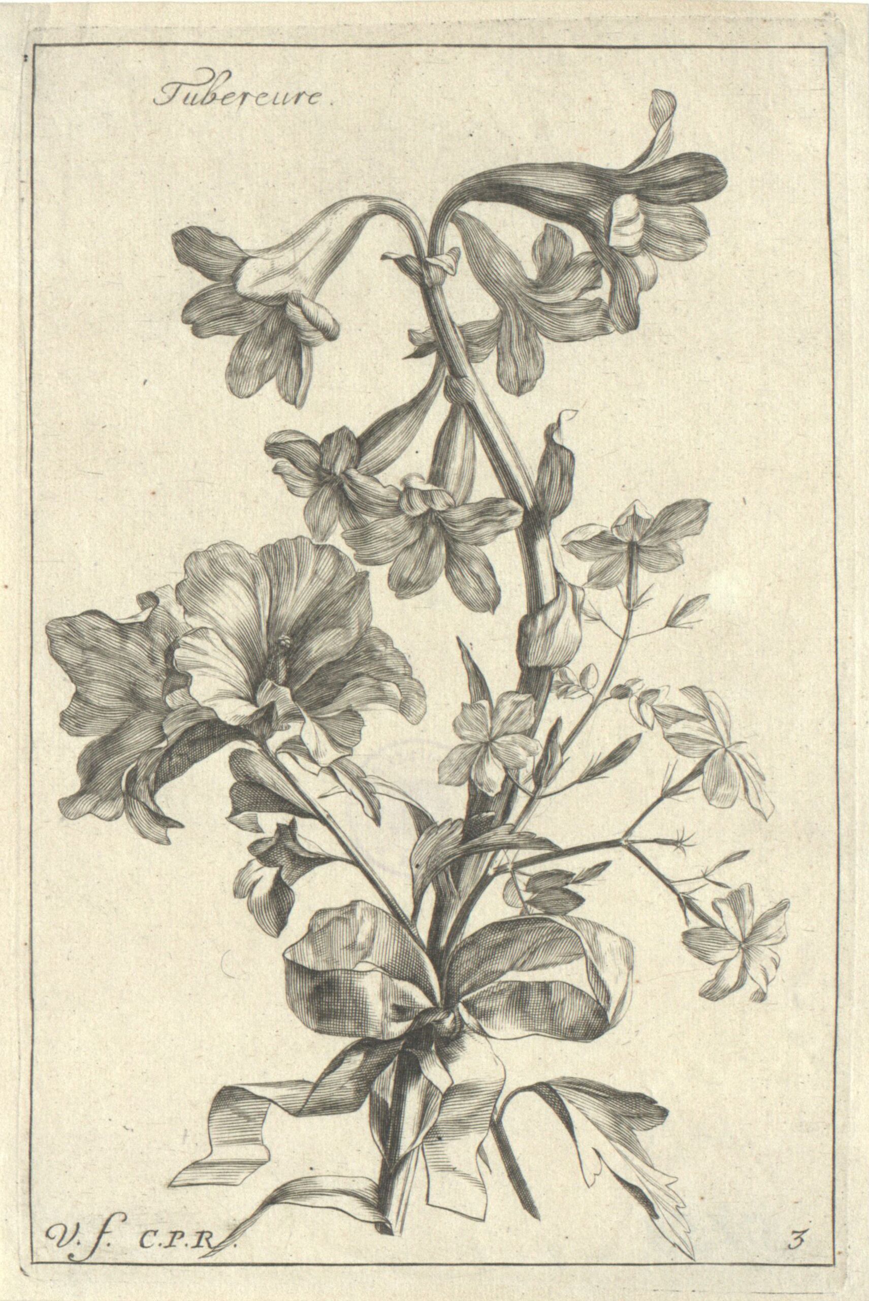 - Blumenstrauß, Blatt 3 aus einer Folge von Blumensträußen mit den jeweiligen Bezeichnungen der Blumen, herausgegeben von Poilly (vom Bearbeiter vergebener Titel)