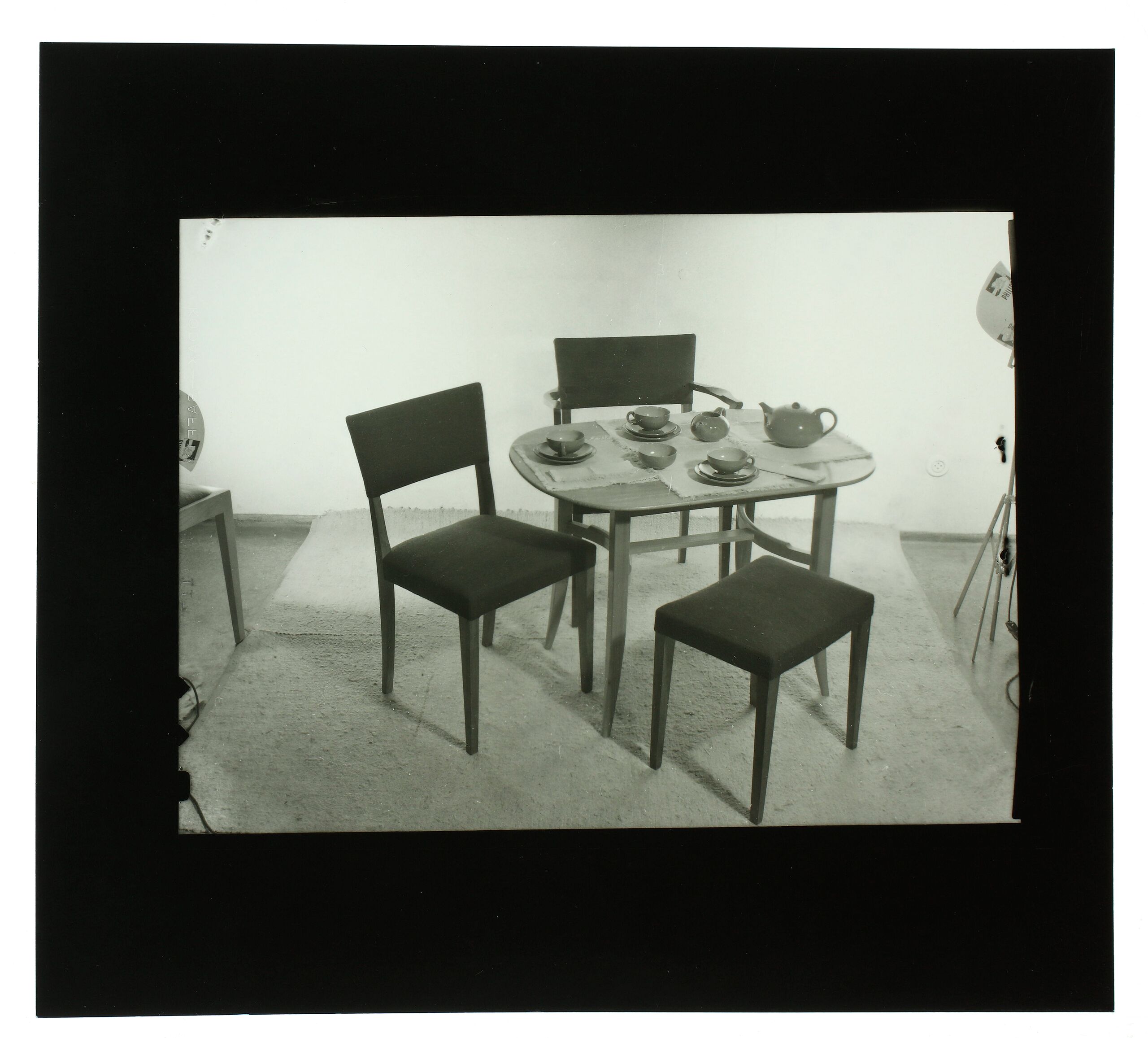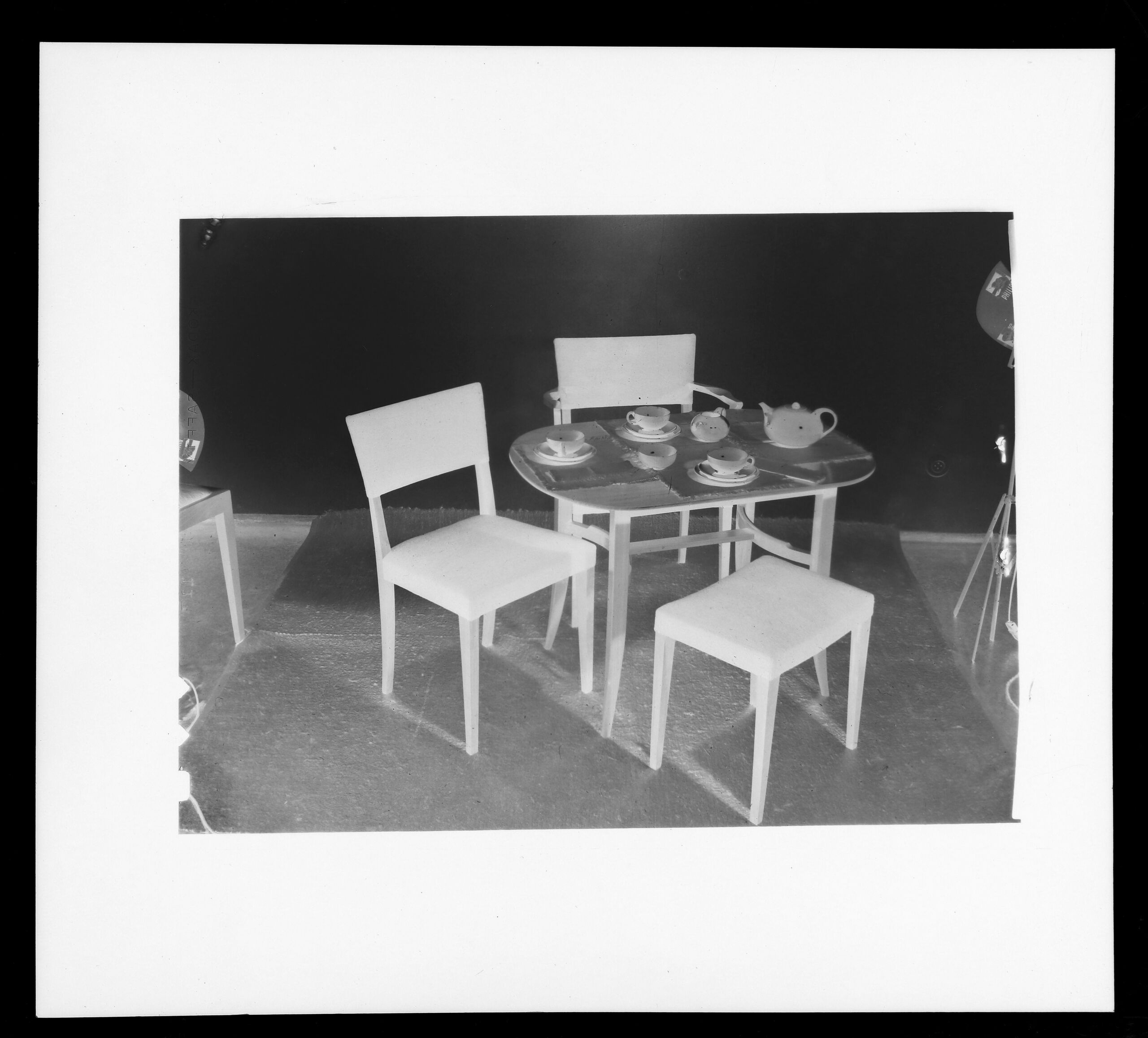 - Esstisch mit 2 Sessel und 1 Hocker (vom Bearbeiter vergebener Titel)