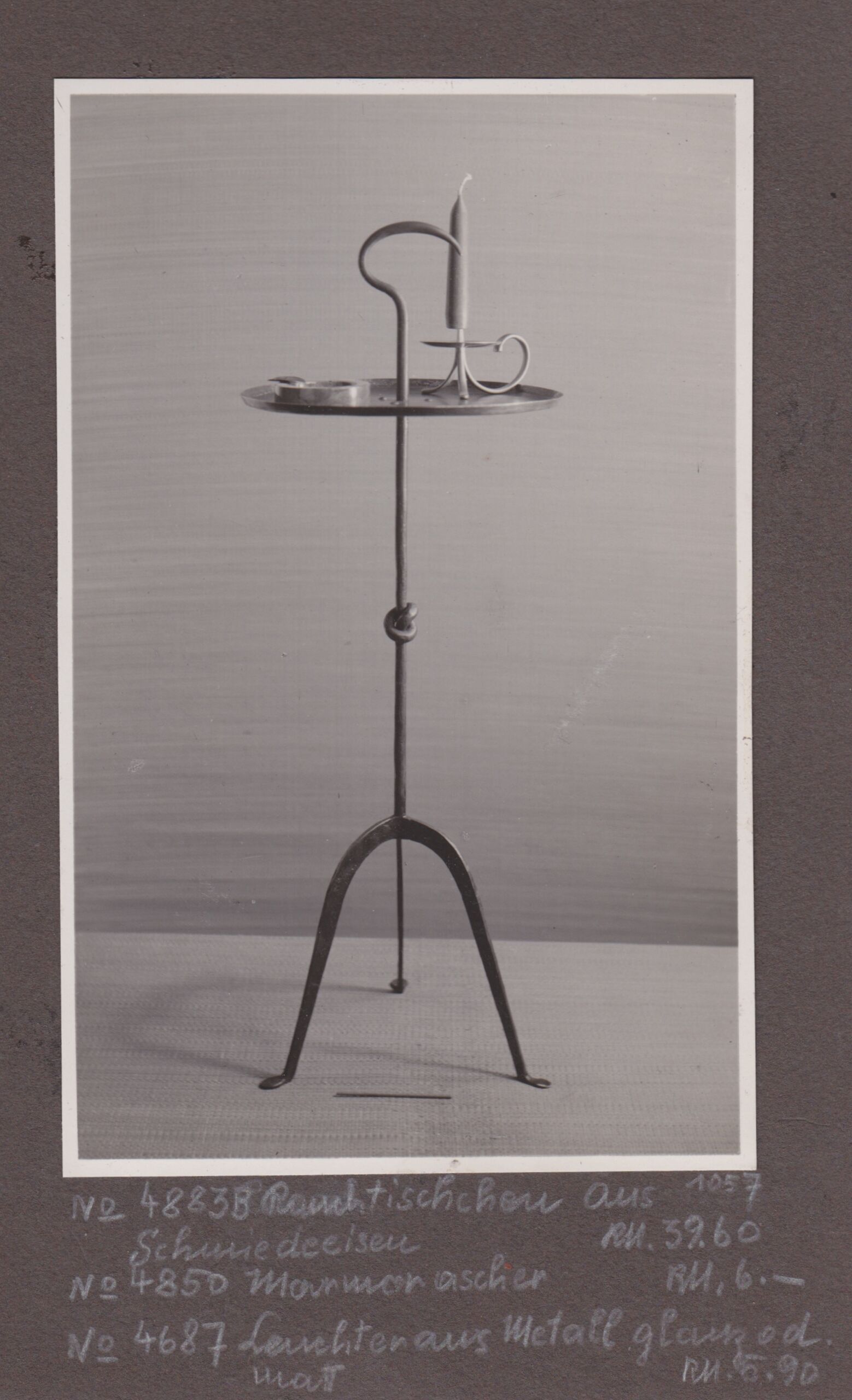 - Text: No.4883B Rauchtisch aus Schmiedeeisen/RM. 29.--/No.4687 Rauchtischleuchter aus Metall/RM. 5.90