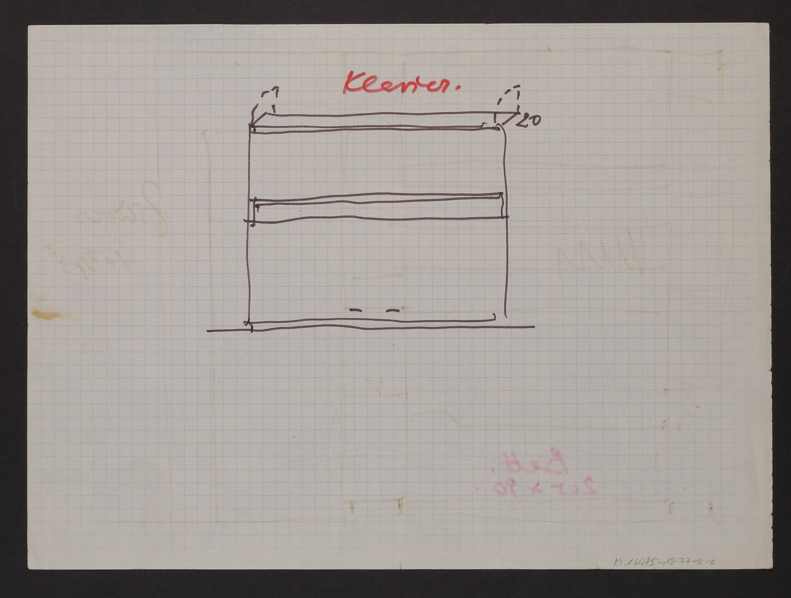- Recto Skizze eines Bettes mit Wandschränken, Verso Skizze eines Klaviers (vom Bearbeiter vergebener Titel)