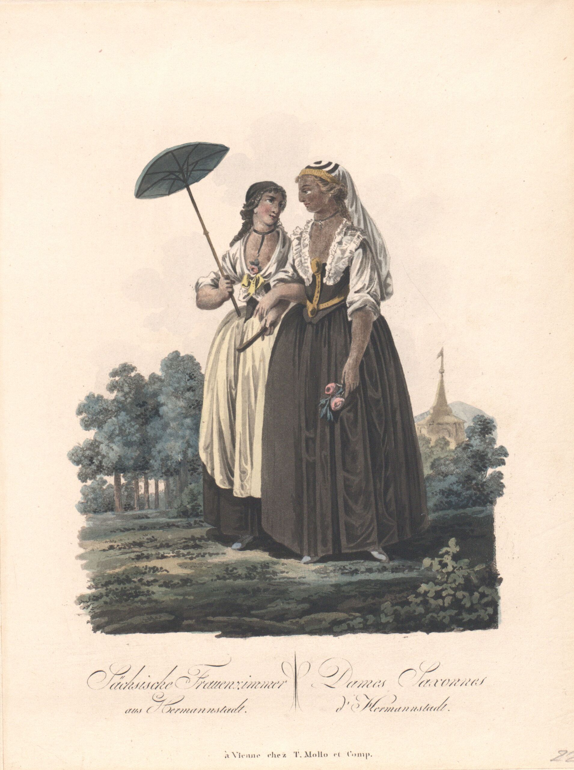 - Text am Objekt: Sächsische Frauenzimmer/ aus Hermannstadt / Dames Saxonnes/ d‘ Hermannstadt / à Vienne chez T. Mollo et Comp.