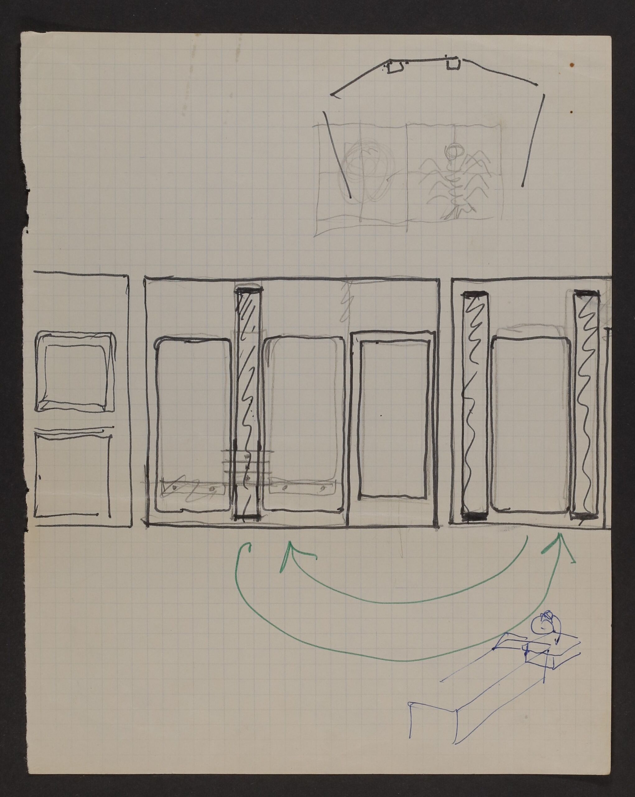 - Skizze einer Regalwand (vom Bearbeiter vergebener Titel)