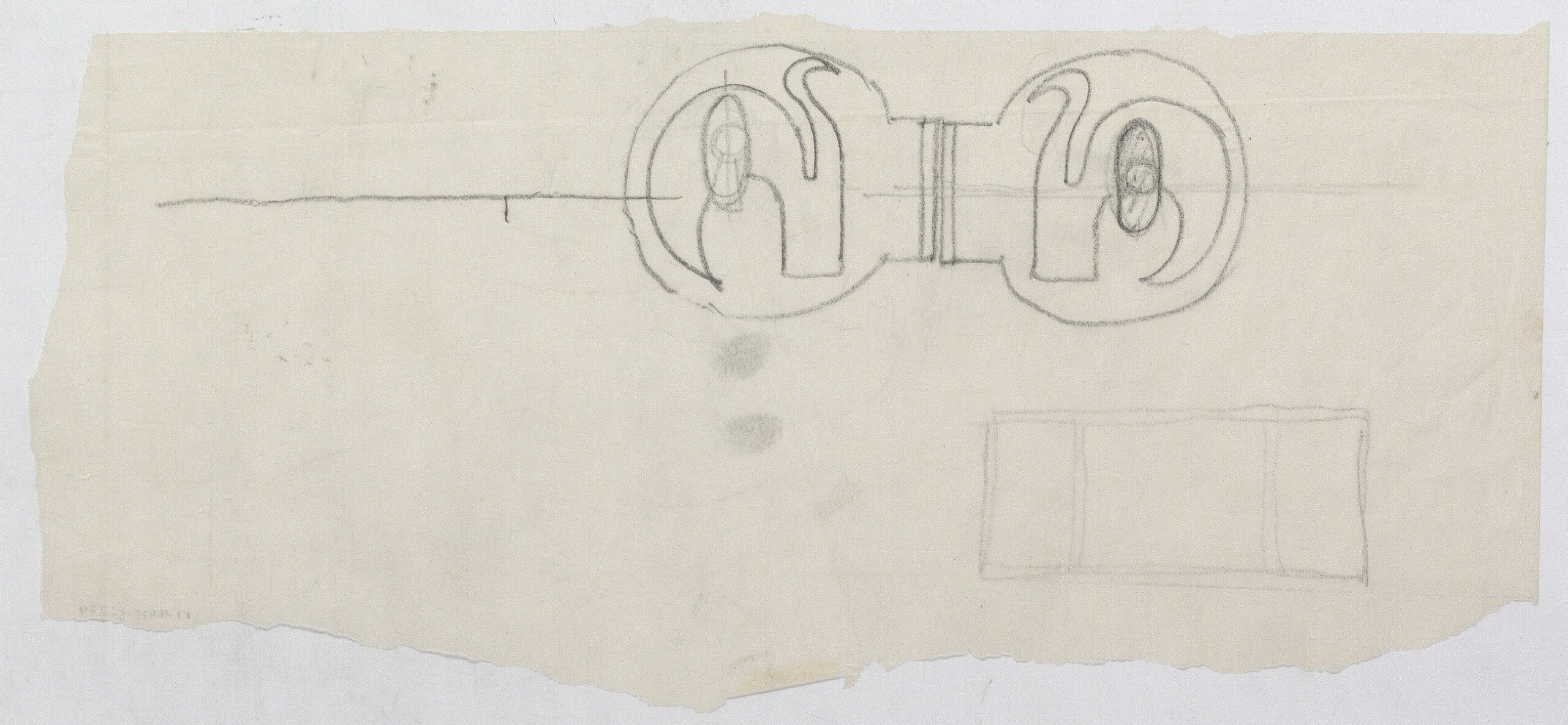- Skizze eines Kastenbeschlags, Skizze eines Kastens (vom Bearbeiter vergebener Titel)