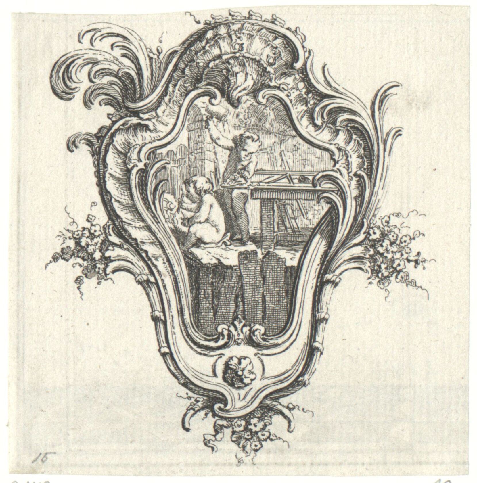 - Vignette mit Putti in Rocaille- Kartusche (vom Bearbeiter vergebener Titel)
