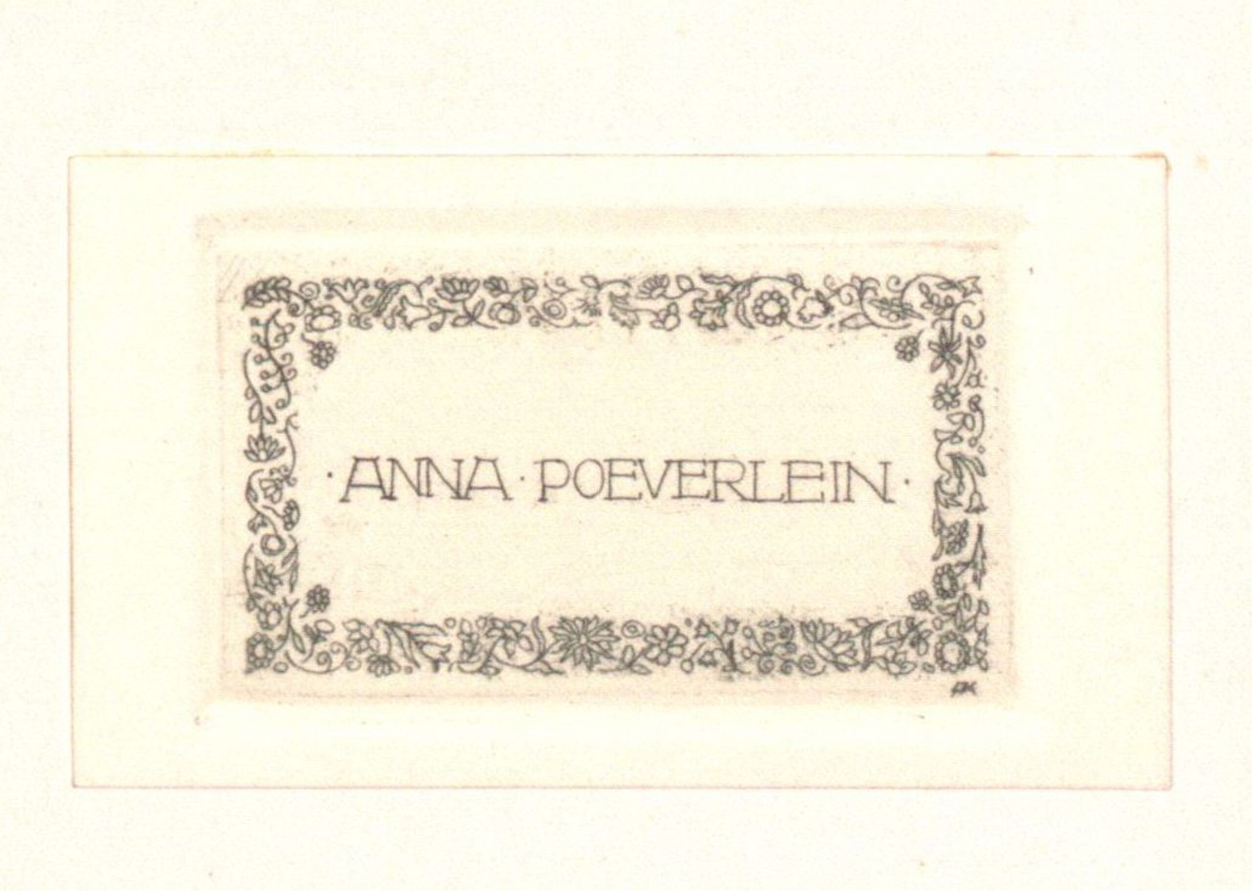 - Text am Objekt: [In der Mitte:] • ANNA • POEVERLEIN • [Rechts unten:] AK [Gedruckter Text]
