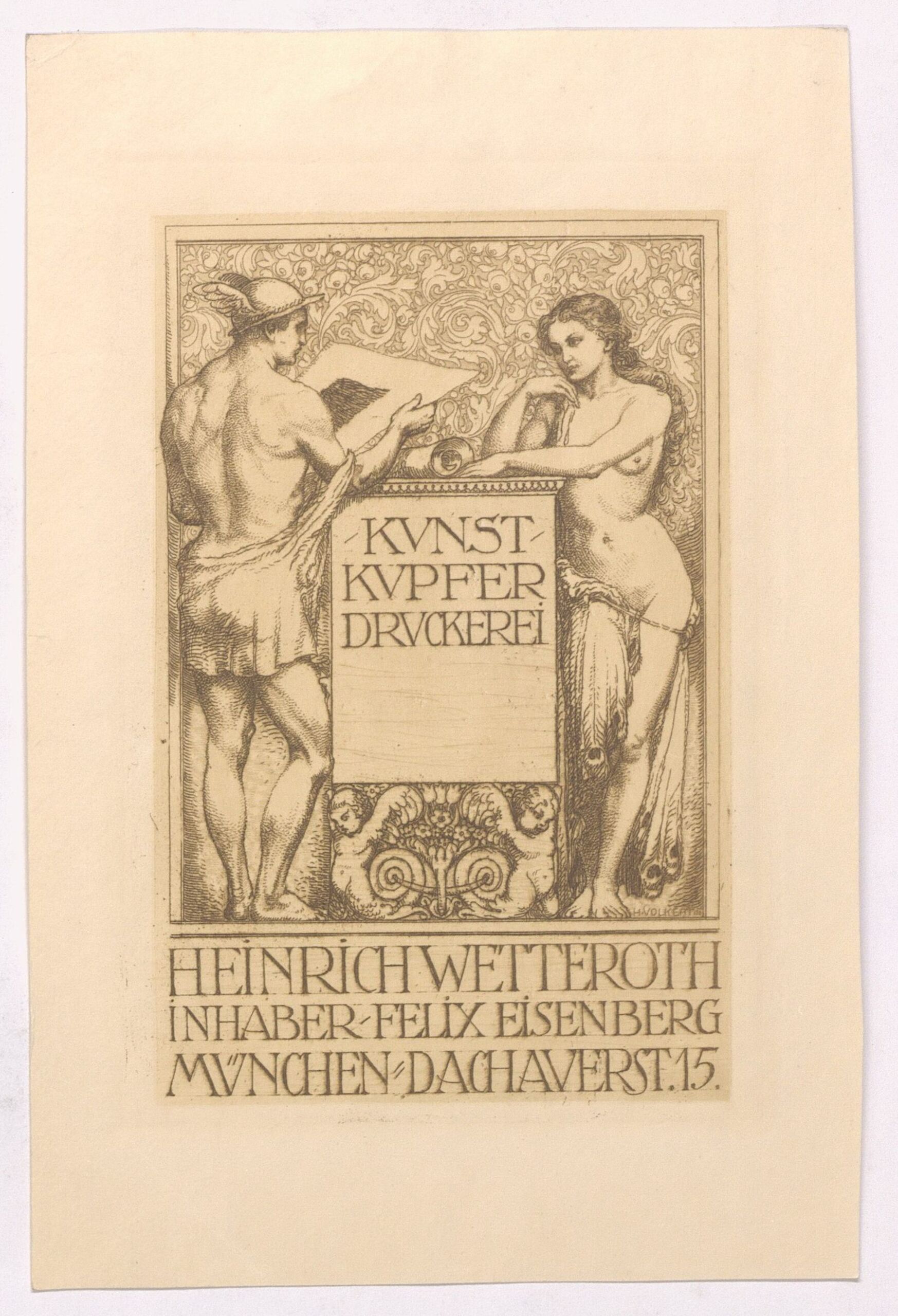 - Text am Objekt: Kunst- / Kupfer / Druckerei / Heinrich Wetteroth / Inhaber Felix Eisenberg / München Dachauerstr. 15