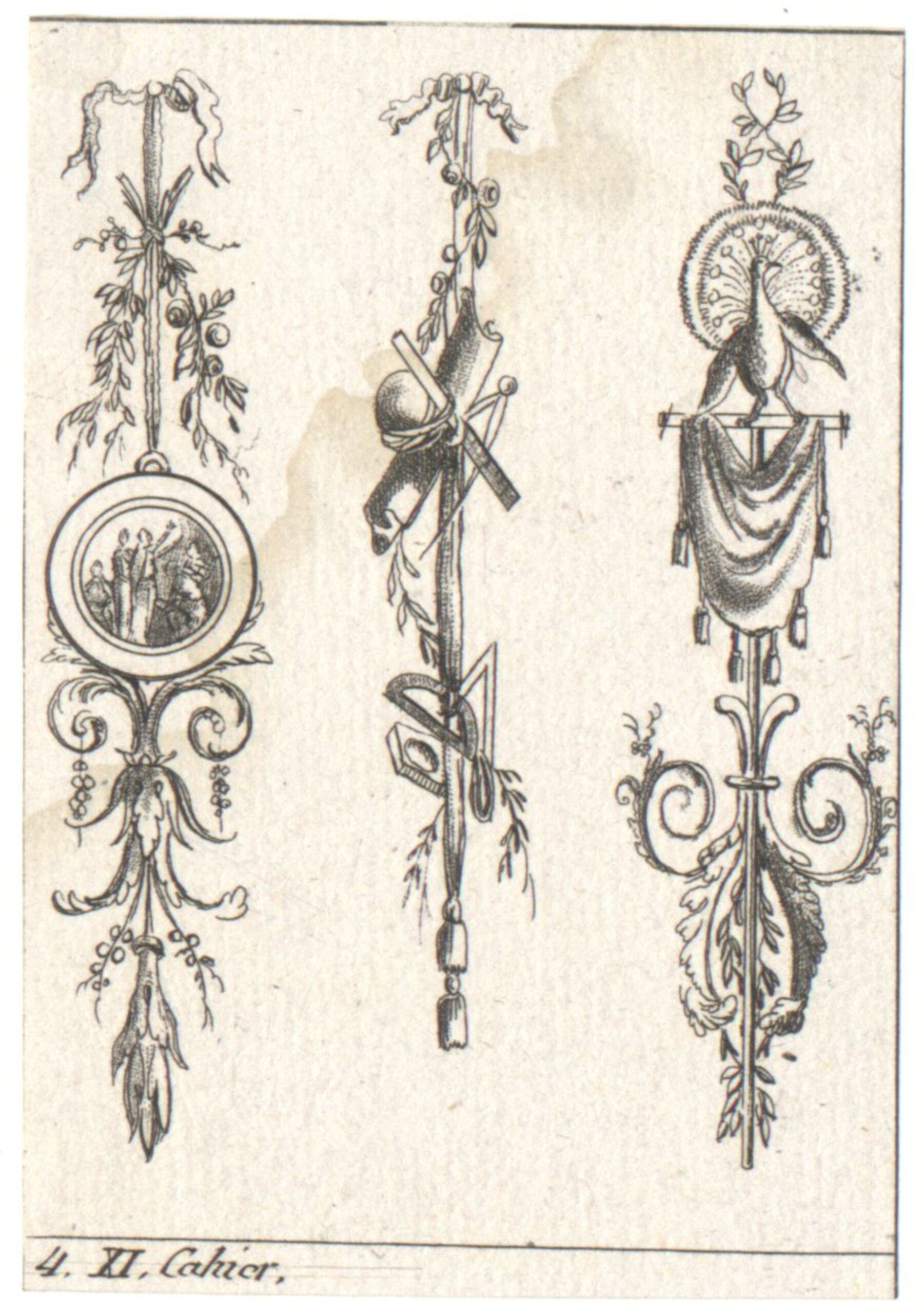 ornamental engraving, 3 Hängeornamente, Blatt 4 aus dem elften Teil einer Folge von kleinen Ornamenten, Henri Sallembier, MAK Inv.nr. KI 1-903-4