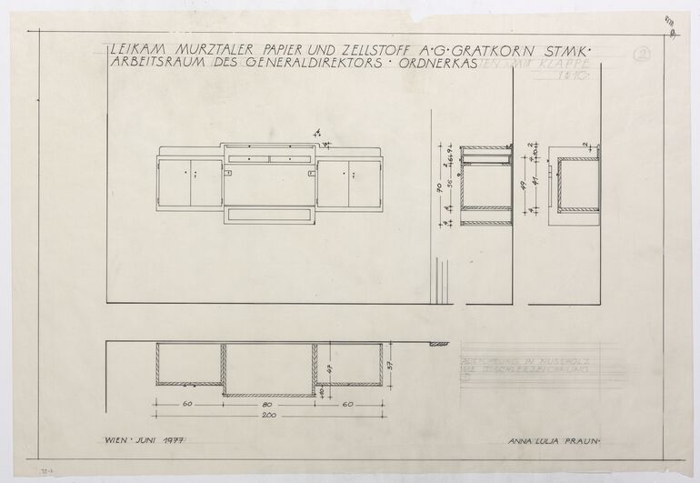 plan copy, Ansichten, Grundrisse sowie Querschnitt eines Büros, Leykam-Mürztaler Papier- und Zellstoff-Aktiengesellschaft, MAK Inv.nr. KI 16475-6-102-4