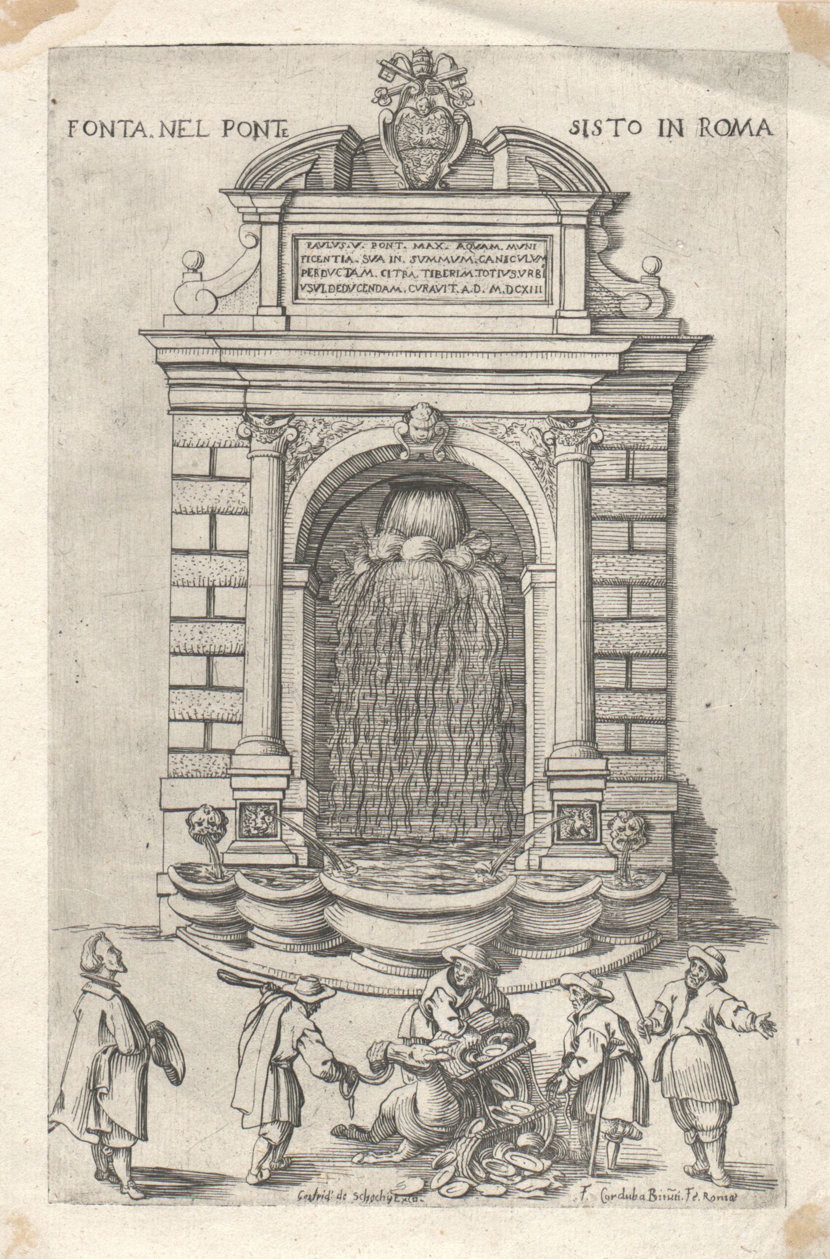 - text on object: FONTA. NEL PONTE SISTO IN ROMA / ... / F. Corduba Bituti. Fe. Roma / Gotfri. de scachij EXCU.
