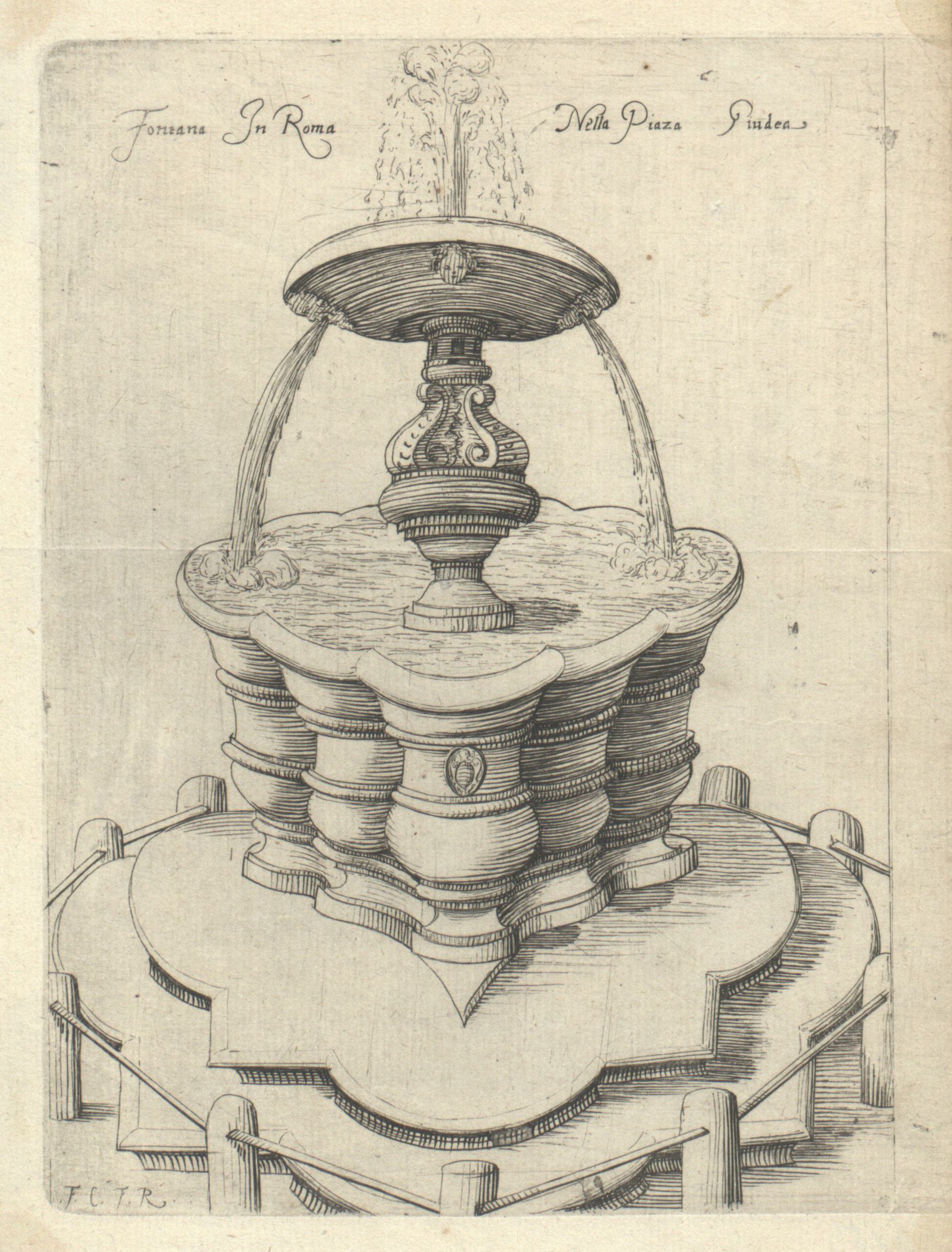 - text on object: Fontana In Roma Nella Piaza Giudea / Monogramm FC F. R.