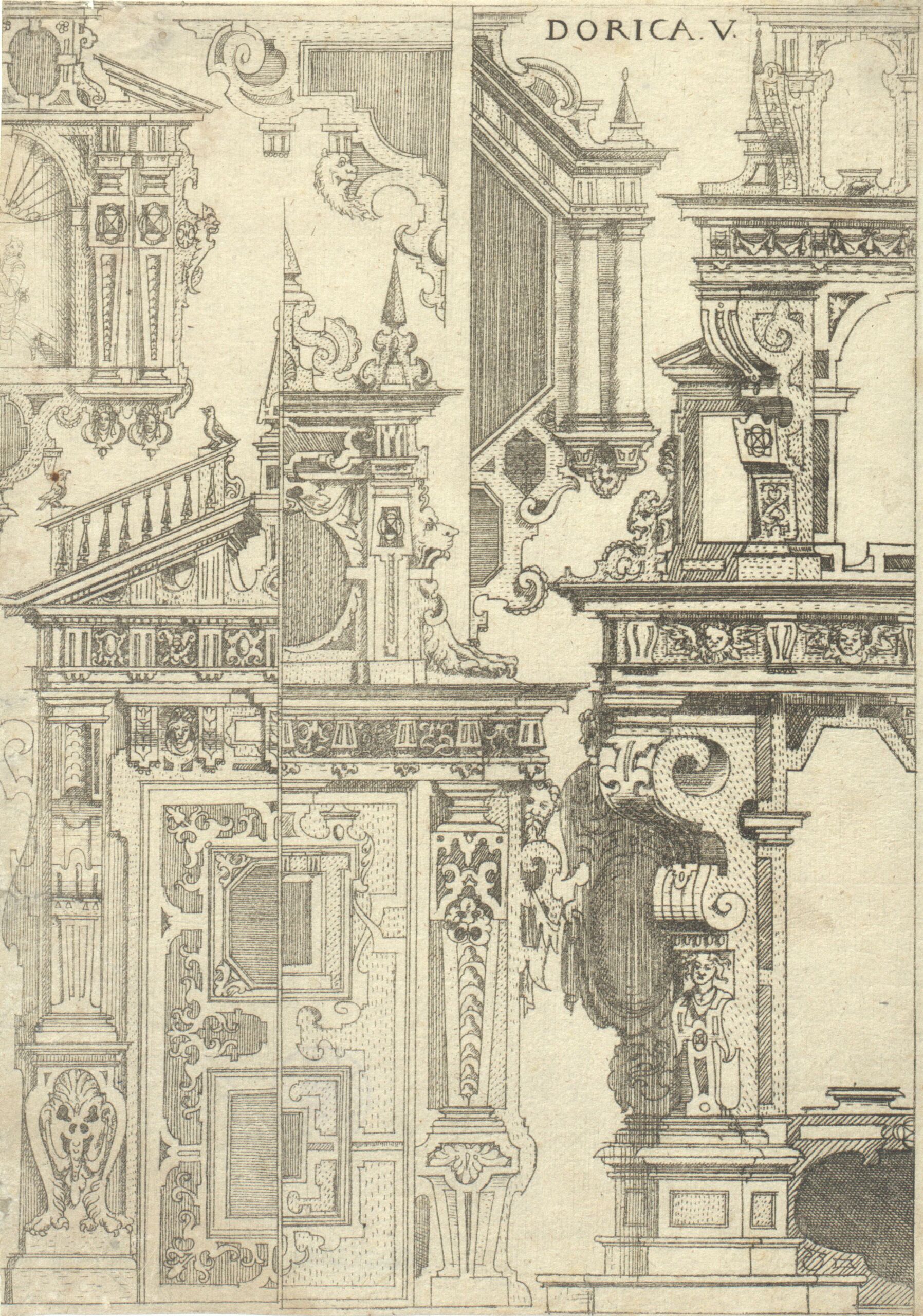 - Dorica V: Altar-, Portal- und Epitaphhälften in dorischer Ordnung. Blatt 9 (given title)