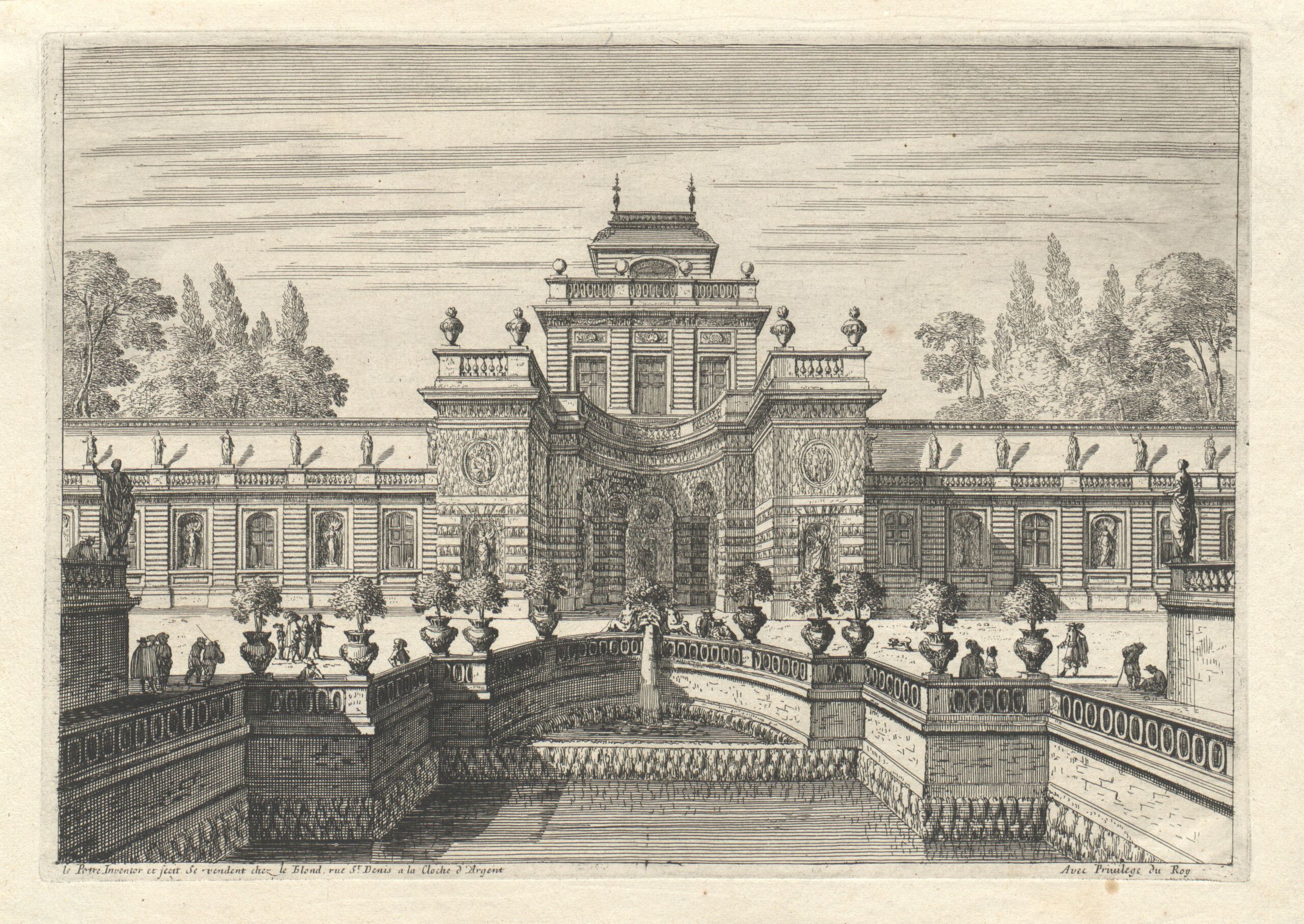 architectural rendering, Ein Springbrunnen und ein Wasserbassin in einem Schloßpark, Jean Lepautre, MAK Inv.nr. KI 1-658-456