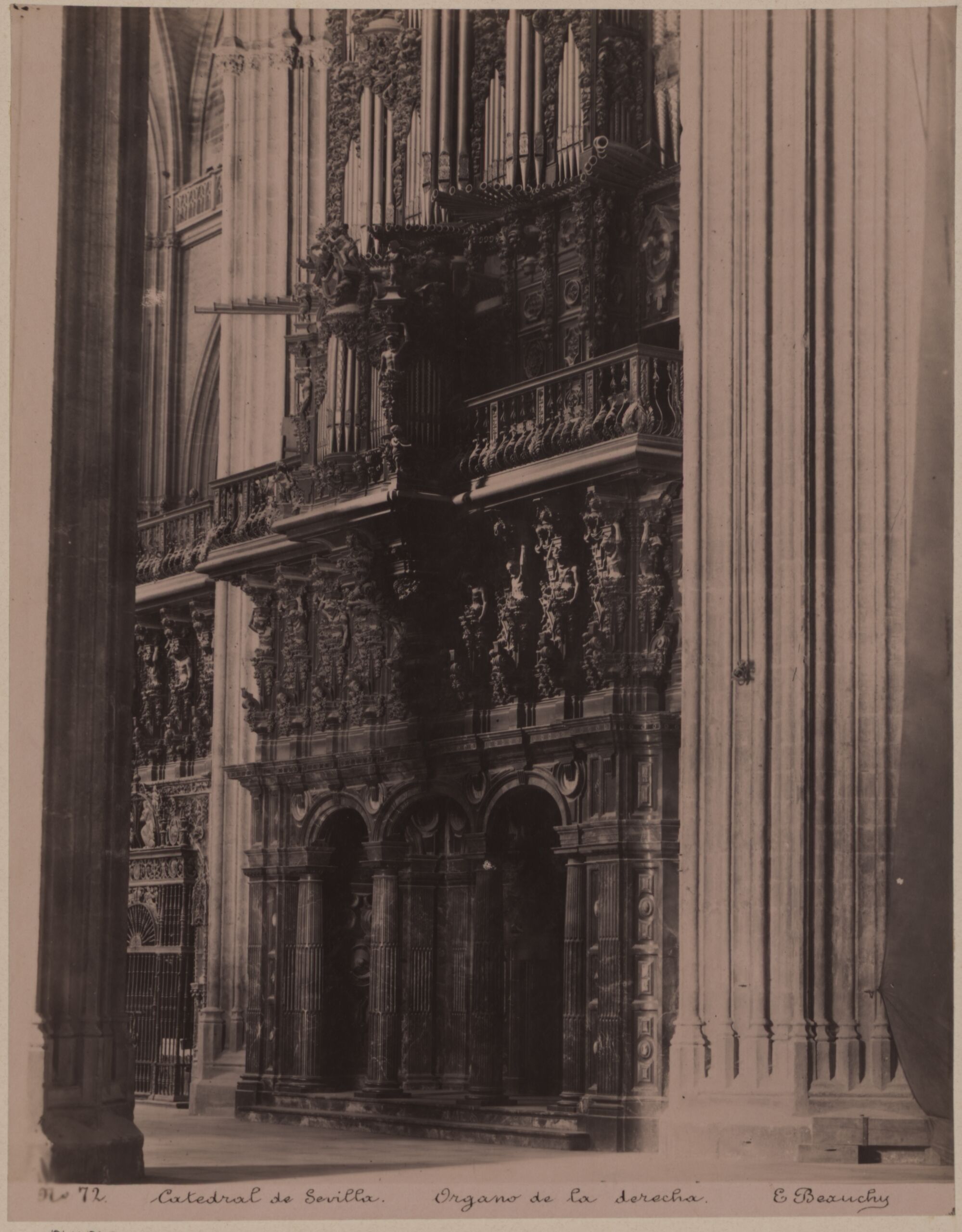 - text on object (mittig unten) : No 72. / Catedral de Sevilla. / Organo de la derecha. / E. Bauchy