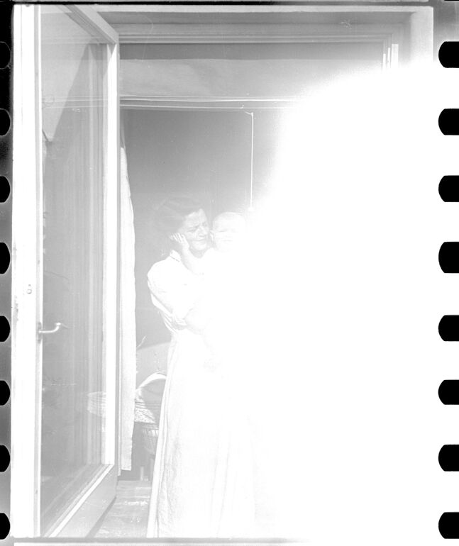 - negative (photographic), Fotonegativ einer aus einem Fenster schauenden Person