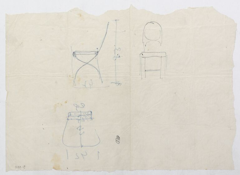 sketch, Frontalansicht, Grundriss und Skizze einer Wandgarderobe, Anna-Lülja Praun, MAK Inv.nr. KI 16475-6-450-3