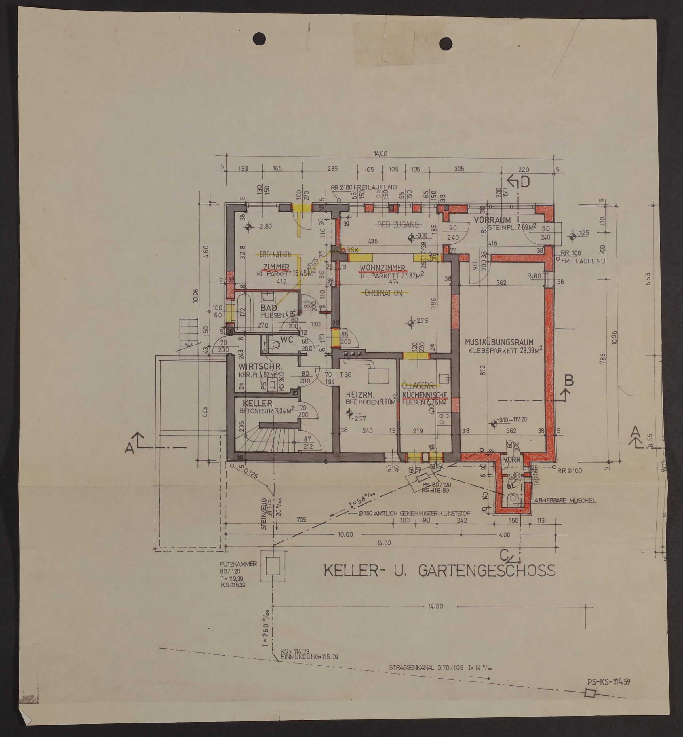plan copy, Grundriss des Kellergeschosses, Anna-Lülja Praun, MAK Inv.nr. KI 16475-18-60-2-16