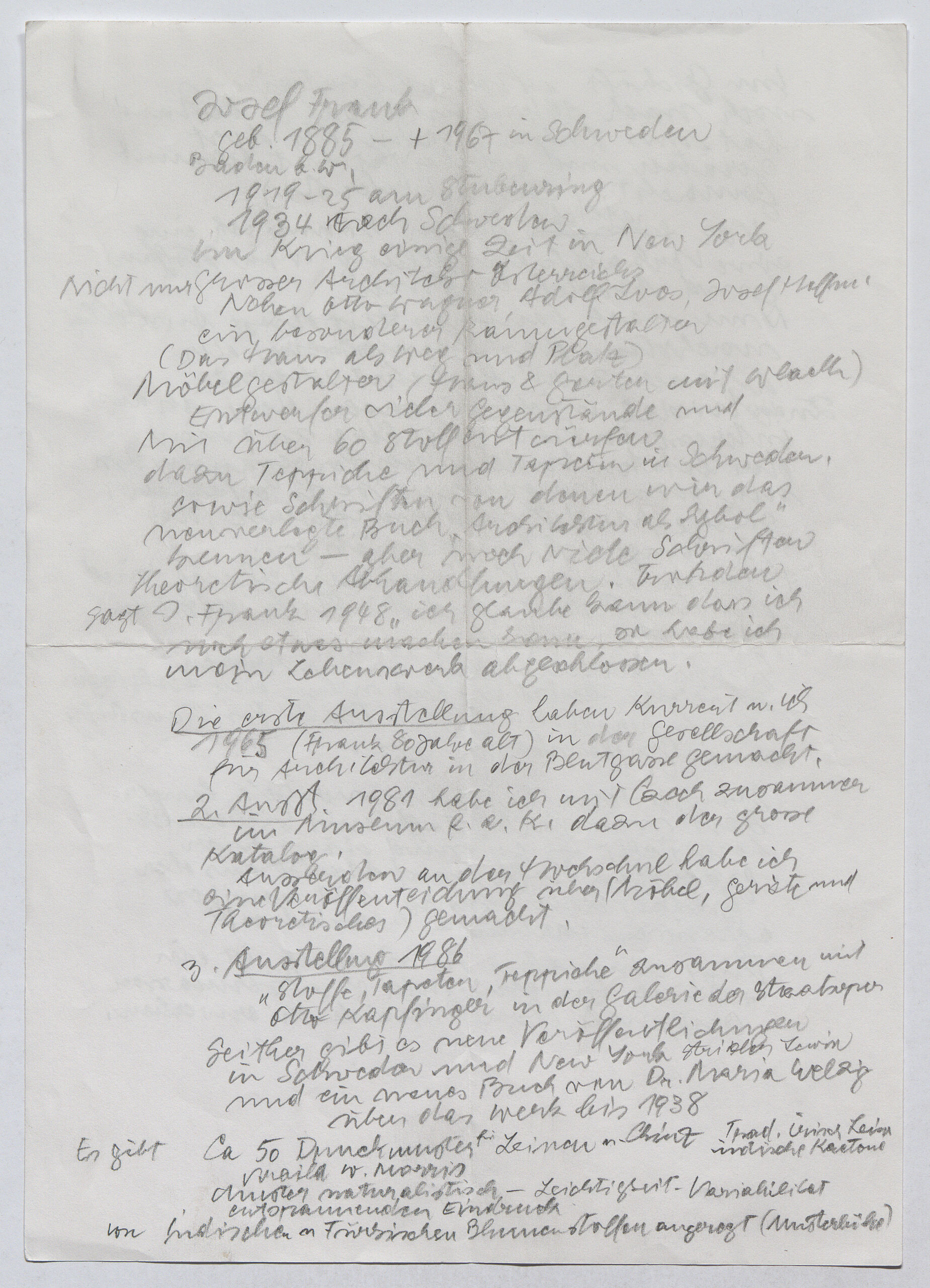 - Skizzenhafte Aufzeichnungen für einen Artikel über Josef Frank (given title)