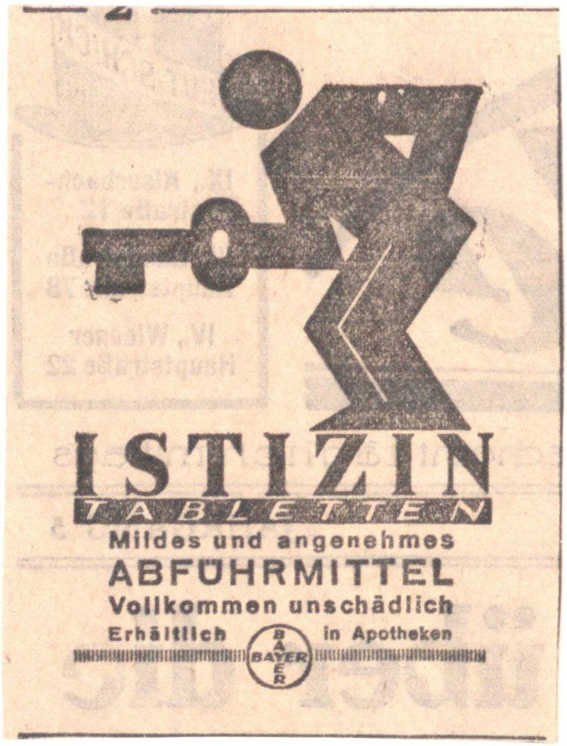 advertisement, Werbeanzeige für Istizin Tabletten. Mildes und angenehmes Abführmittel. Vollkommen unschädlich, Karl Schulpig, MAK Inv.nr. KI 9410-23