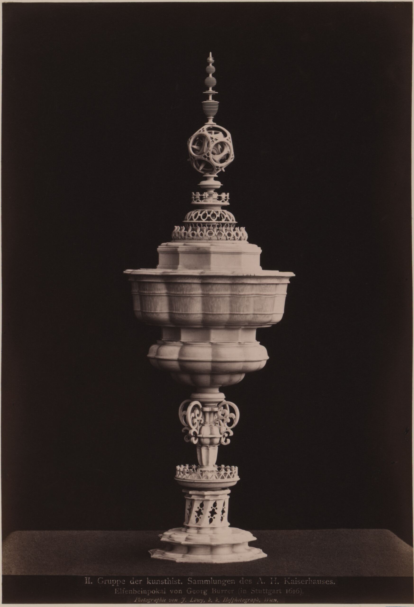 photograph, Fotografie eines gedrechselten Elfenbeinpokals von Georg Burrer von 1616, Josef Löwy, MAK Inv.nr. KI 3693-2