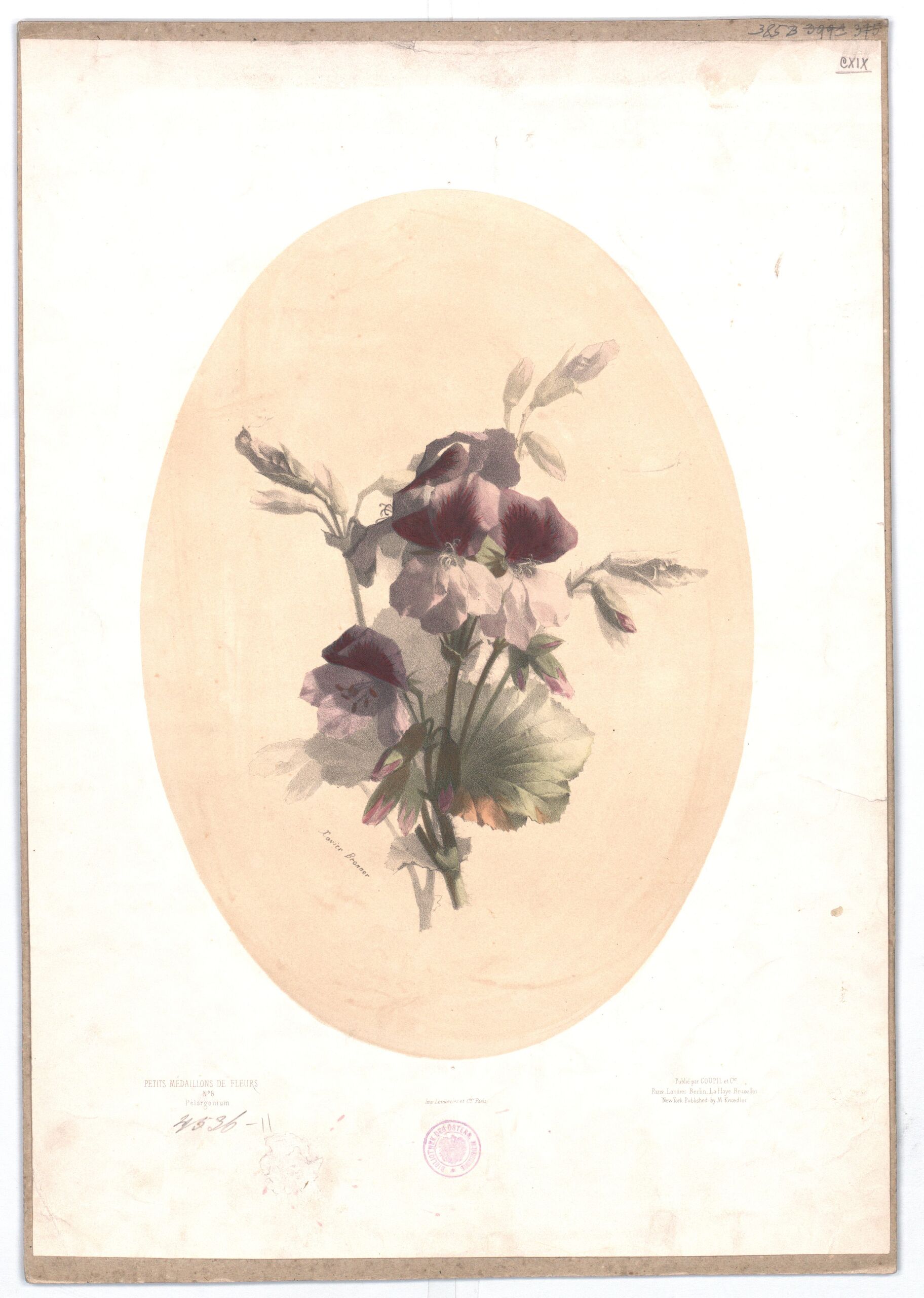 flower illustration, Pelargonie aus "Petits Medaillons de Fleurs" von Xavier Bronner, Xavier Bronner, MAK Inv.nr. KI 4536-11